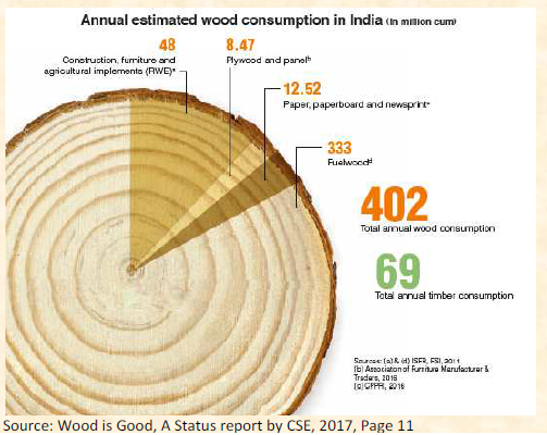 - According to the same report, only 6.7% of wood comes from forests, and rest from out-of-forest trees.